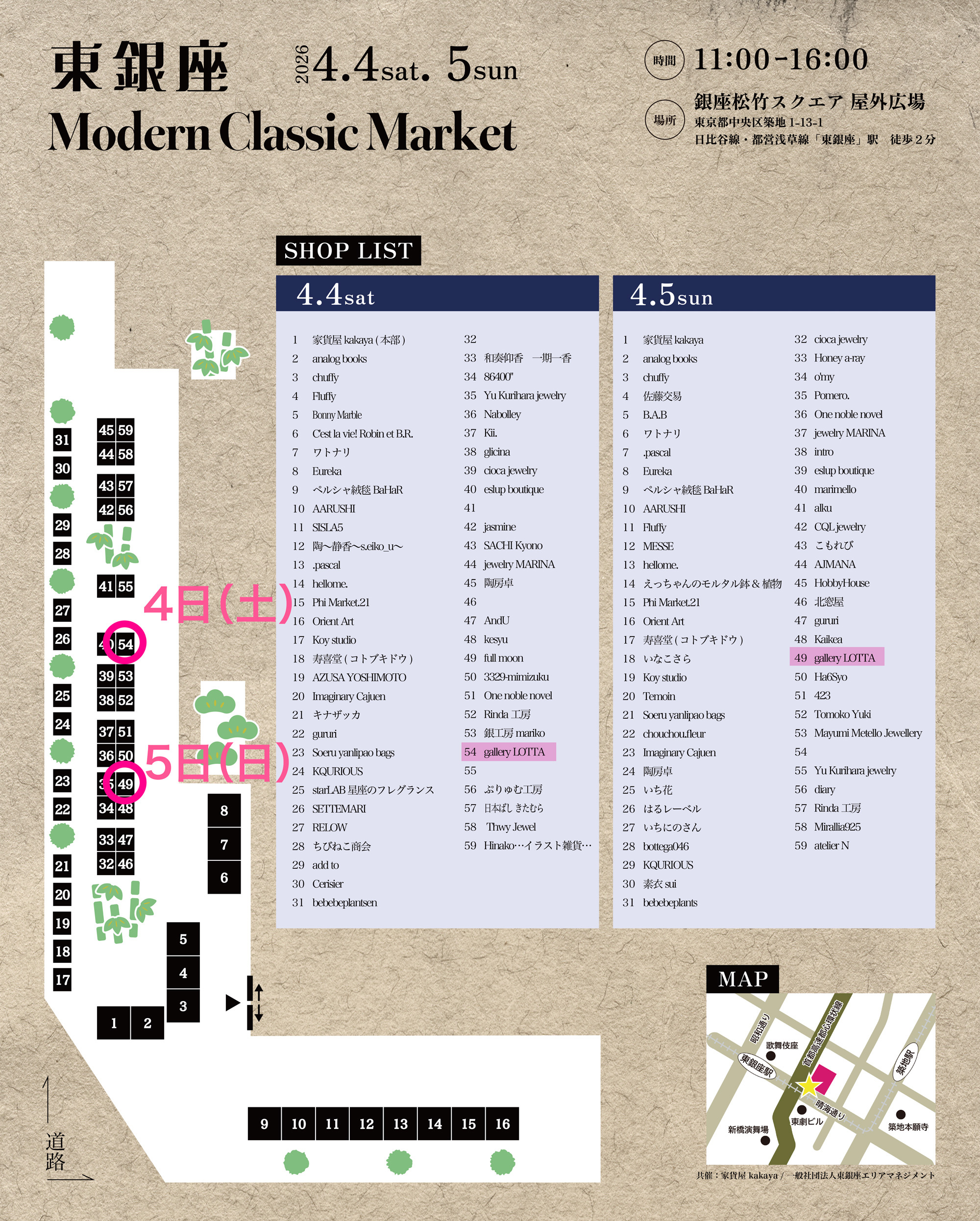 トップ > column > 26年4月東銀座Modern Classic Market ~東銀座モダンシックマーケットに出店します